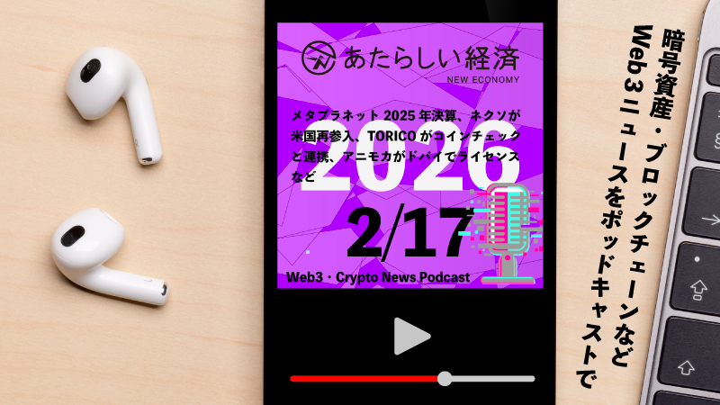 【2/17話題】メタプラネット2025年決算、ネクソが米国再参入、TORICOがコインチェックと連携、アニモカがドバイでライセンスなど(音声ニュース)